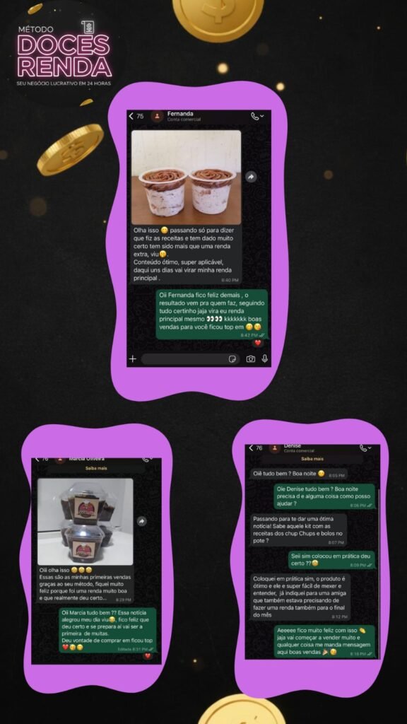 O Kit Doces Renda é o método que milhares de pessoas já aprovaram para transformar o que você já tem em casa em uma renda extra de verdade.